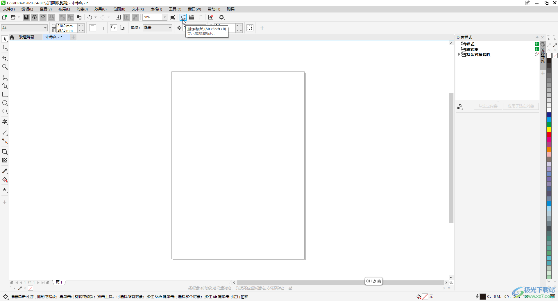 第一步:点击打开CorelDRAW,在界面上方点击如图所示的图标可以调出标尺;
