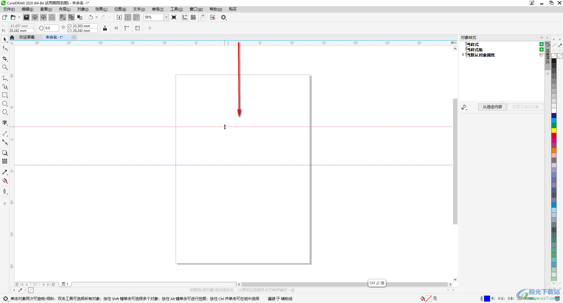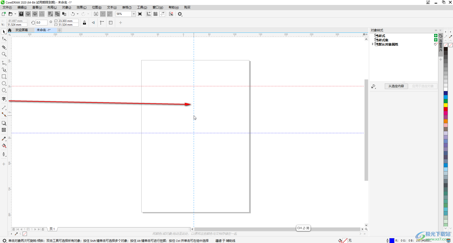 第三步:从左侧的标尺处向界面中拖动,可以得到垂直的辅助线;