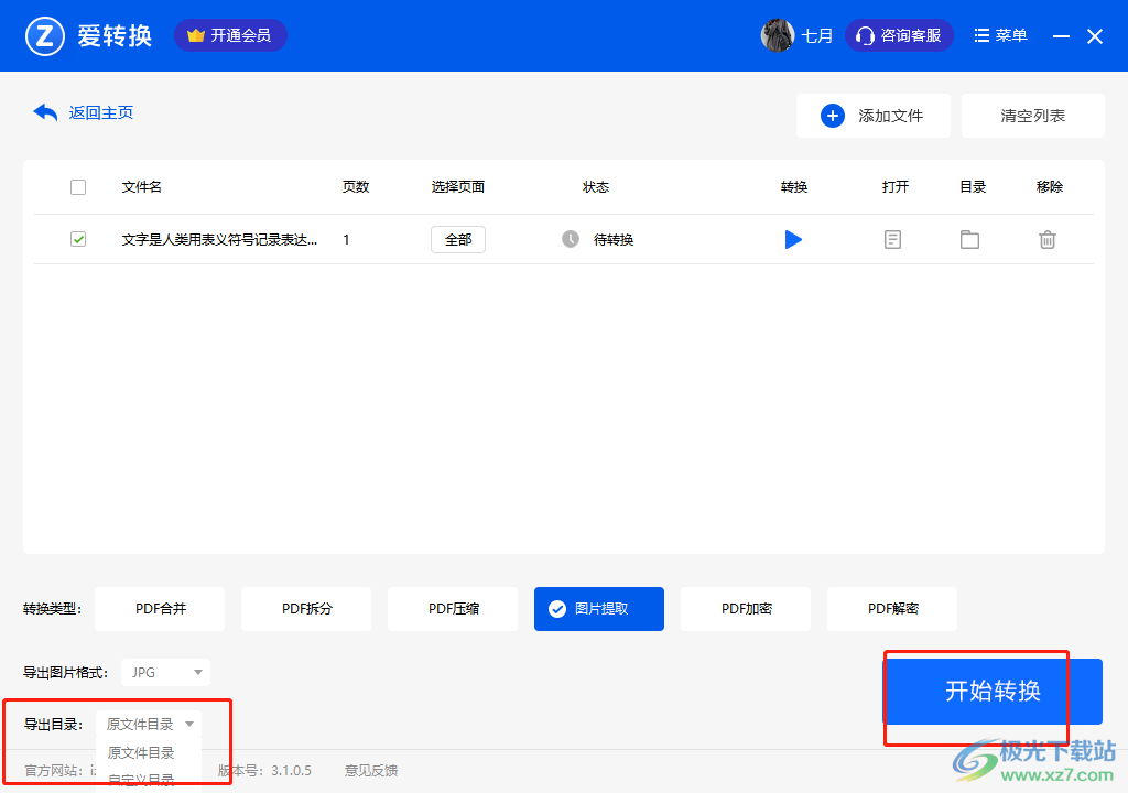 爱转换PDF转换器中的功能是很齐全的,能够很好满足用户对pdf文件的处理需求,当用户需要提取pdf文件中的图片时,直接软件中找到图片提取选项,接着上传pdf文件并设置好导出图片格式和导出目录即可设置成功,方法简单易懂,有需需要的用户可以来试试看。