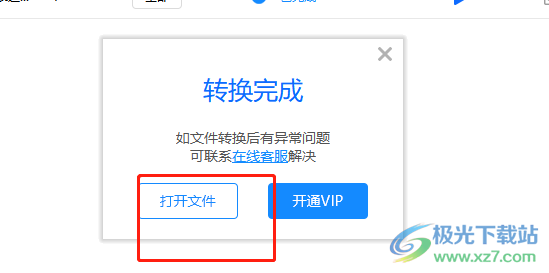 7.设置完成后,用户按下开始转换按钮,将会弹出转换完成的提示窗口,用户按下其中的打开文件按钮