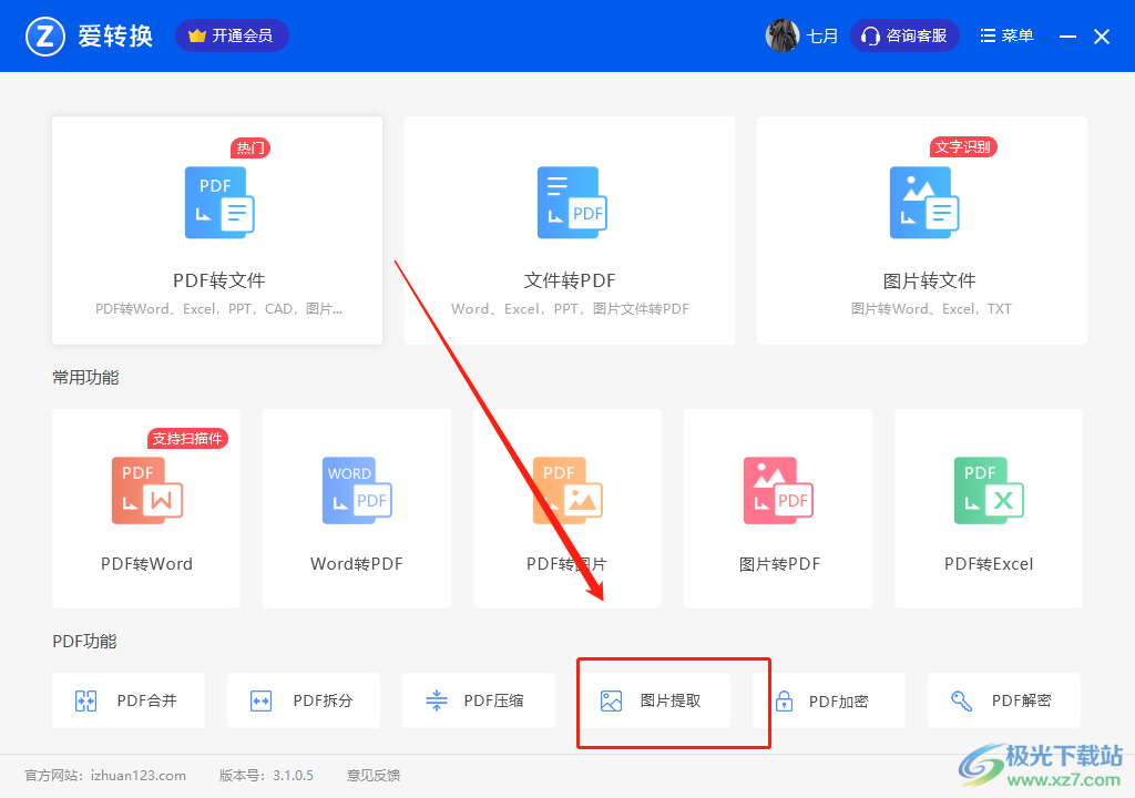 1.用户在电脑桌面上打开爱转换PDF转换器软件,并来到主页上点击pdf功能板块中的图片提取板块
