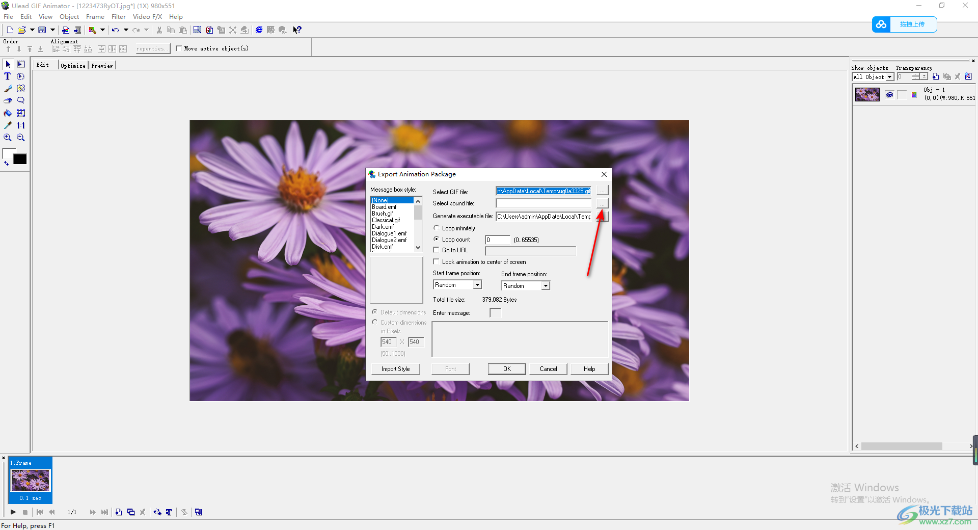 ulead gif animator这是一款比较经典的gif动态图片制作软件,我们可以将自己需要的图片导入到ulead gif animator中进行制作成gif动图,当我们通过该软件制作好自己需要的动图之后,我们可以给该动图添加一个好听的音乐,很多小伙伴不知道怎么给动图添加音乐铃声,其实当我们导出文件的时候,在导出的页面中可以选择将自己本地中的音乐文件添加进行设置成为动图的音乐,非常的简单,但是该软件仅支持添加mid和wav这两种音乐格式的文件,下方是关于如何使用ulead gif animator给gif动图添加音乐的具体操作方法,如果你需要的情况下可以看看方法教程,希望对大家有所帮助。