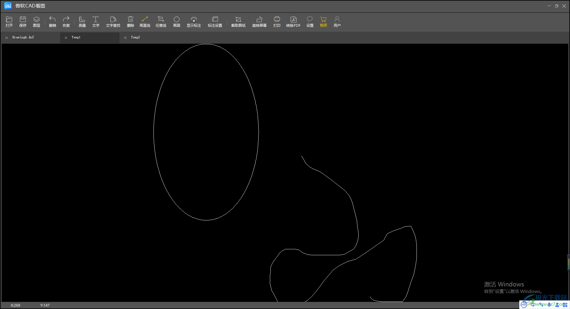 1.首先我们在傲软CAD看图中新建一个文件,直接在页面上可以进行绘制。