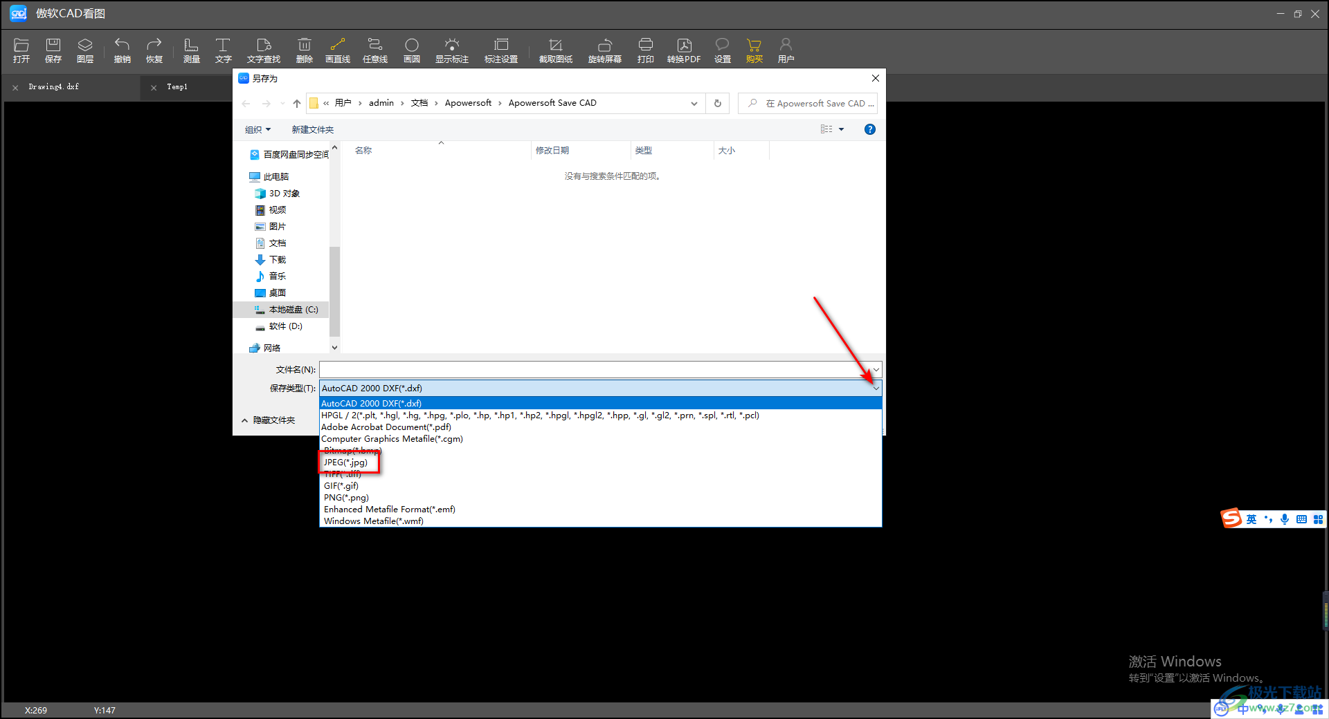 以上就是关于如何使用傲软CAD看图将图纸保存为图片的具体操作方法,一般我们的图纸的格式都是dwg或者dxf这两种格式,如果你想要将CAD图纸转换为图片格式的话,那么直接在保存文件的窗口中,将保存类型更改为jpg或者png图片格式即可,感兴趣的话可以操作试试。