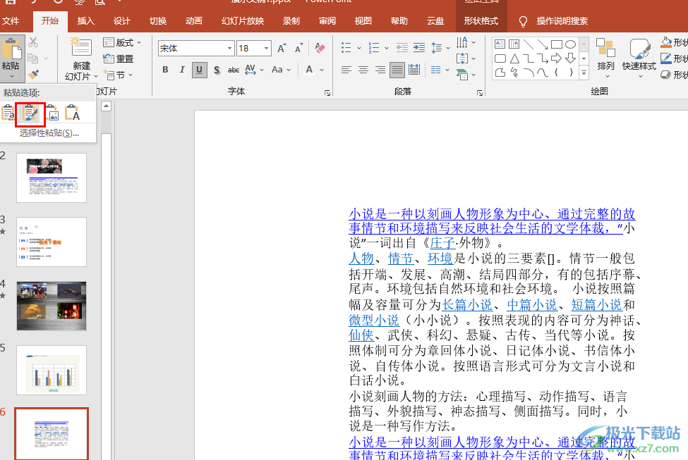 以上就是小编整理总结出的关于PPT粘贴保留原格式的方法,我们在PPT中先复制自己想要粘贴的内容,然后在“开始”的子工具栏中打开“粘贴”工具下的箭头图标,最后在下拉列表中点击选择“保留源格式”选项即可,感兴趣的小伙伴快去试试吧。