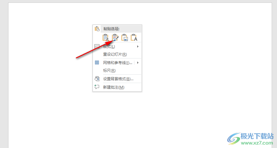 5、第五步,我们在幻灯片中直接右键单击幻灯片页面也能在菜单列表中看到“粘贴选项”以及“保留源格式”选项,直接点击“保留源格式”选项即可