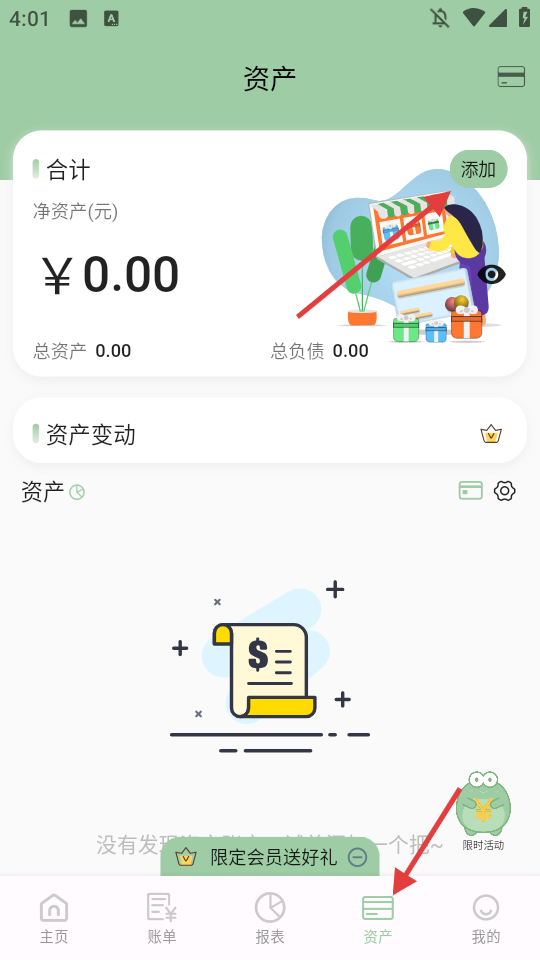资产管理:支持各个银行卡、支付宝、微信、现金钱包等资产账户,方便管理统计负债、净资产,轻松知道个人财务情况。