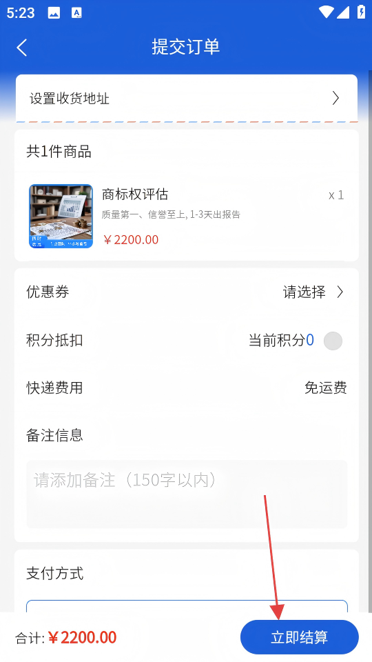 4、进入提交订单页面,设置收货地址,选择支付方式等信息,然后点击【立即结算】按钮,完成服务购买流程。