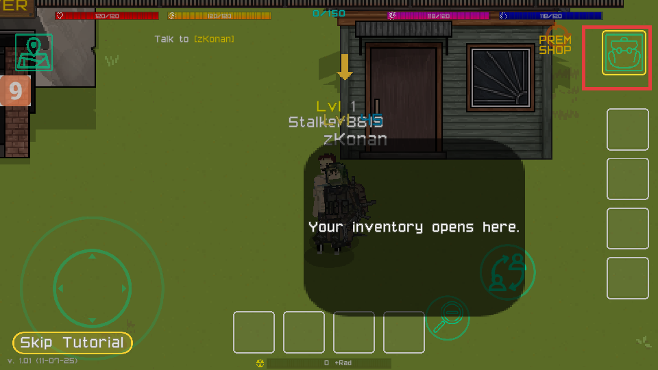 2、点击inventory图标,打开背包,管理物品。
