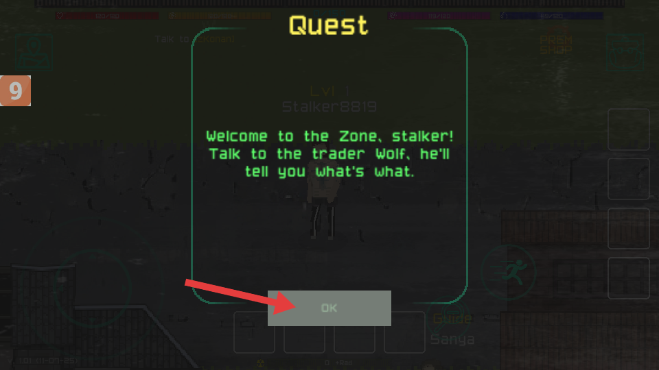 1、点击【OK】,确认任务提示,与商人Wolf对话,开启任务。