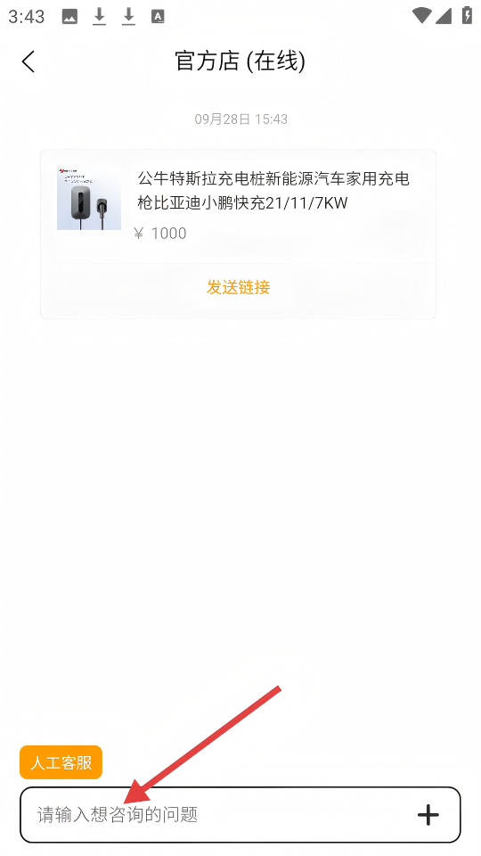 4、在官方店(在线)的客服页面,点击【请输入想咨询的问题】输入框,可输入问题咨询客服。