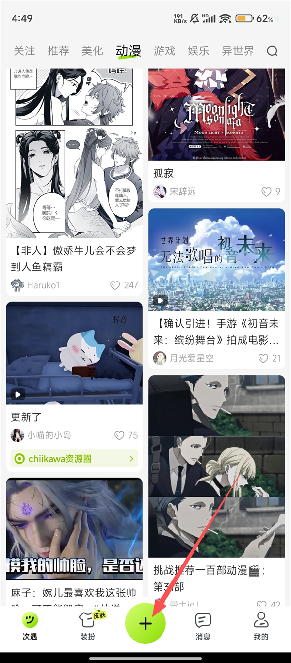 1、我们打开百度输入法,点击底部绿色【+】号,进入内容发布选择界面,开启动态发布流程呀。