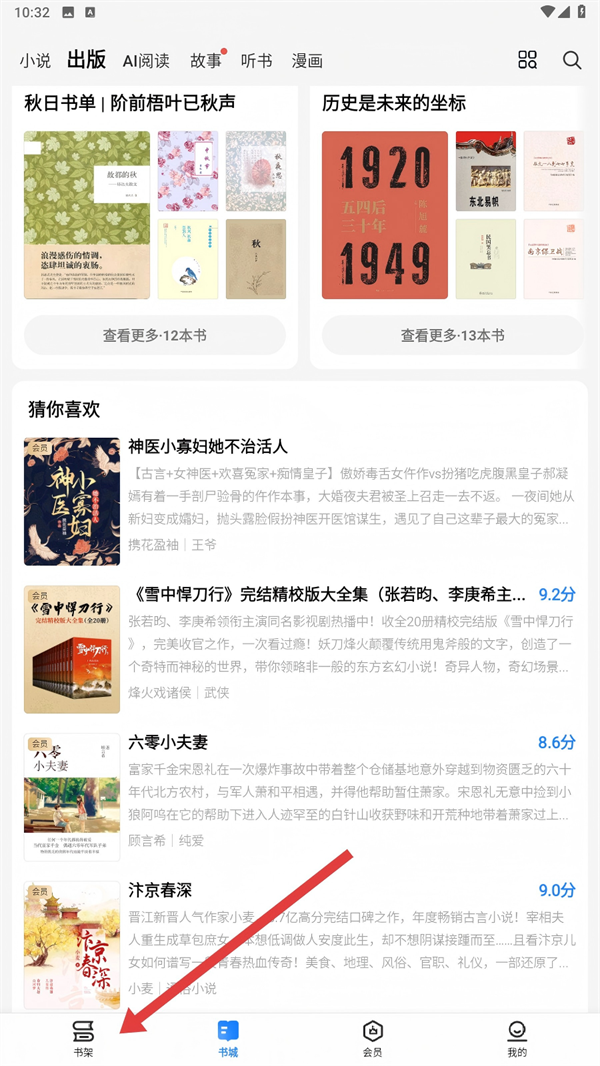 1、打开掌阅App,点击底部【书架】标签,进入书架页面,方便管理书籍呀。