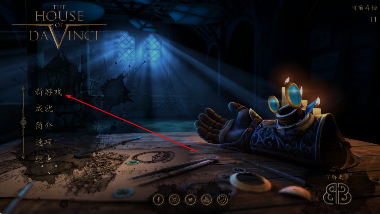 1、点击“新游戏”,进入《达芬奇密室1》游戏。