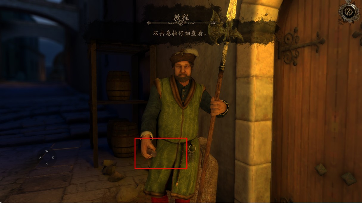 3、接着双击警卫手中的卷轴,仔细查看卷轴信息。