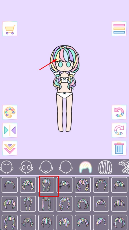 2、在发型栏选双马尾发型,为女孩更换,塑造头部造型。