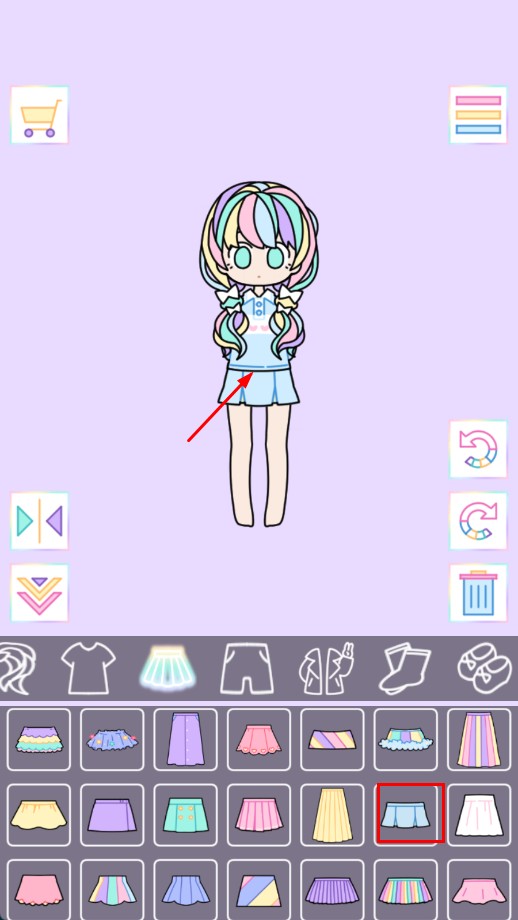 4、最后选蓝色短裙,为女孩搭配下装,完善整体装扮效果。