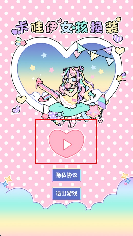 1、点击粉色心形【开始】按钮,进入【卡哇伊女孩换装】游戏,开启装扮之旅。