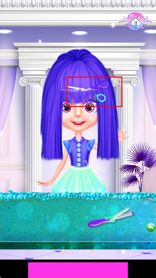 4、最后用紫色剪刀,修剪头发,打造理想发型效果。