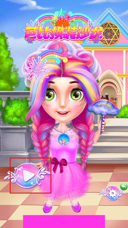 1、点击【开始】按钮,进入【芭比换装沙龙】游戏,开启美发换装流程。