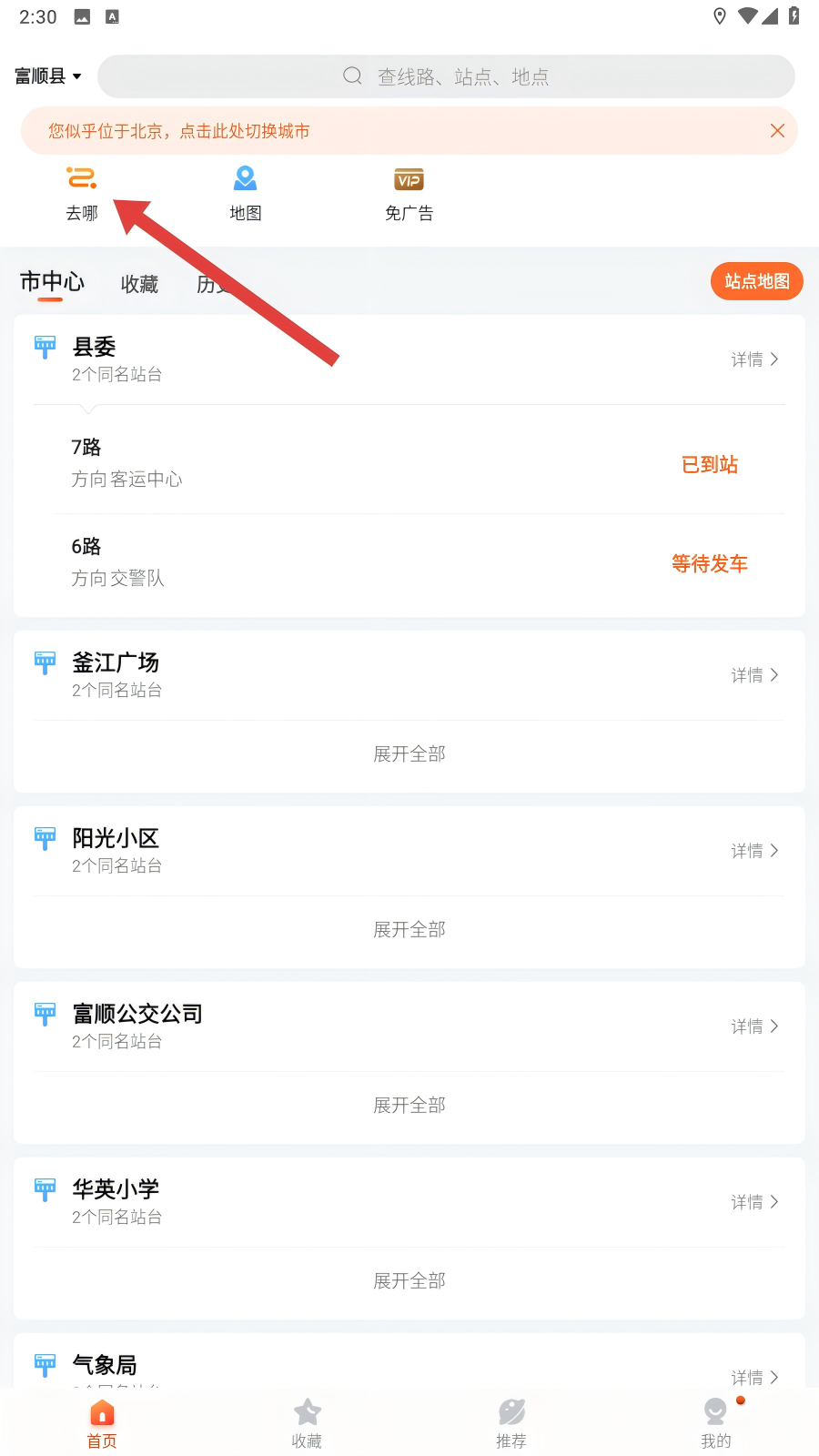 输入站点、线路、地点信息,显示公交车到哪了,还有几站到了。