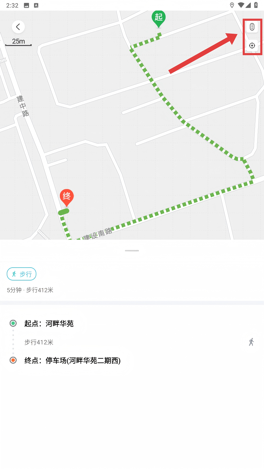 4、进入地图导航界面后,点击右上角功能按钮,可切换地图视图等,优化步行导航体验呀。