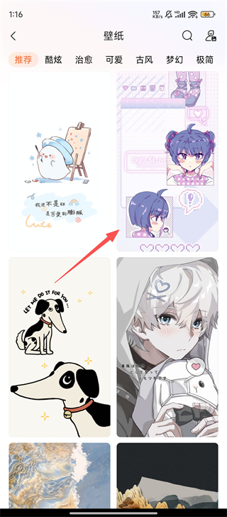 3、来到壁纸选择页,有【推荐】、【酷炫】等分类,选中心仪的壁纸样式并点击,就能查看详情啦。