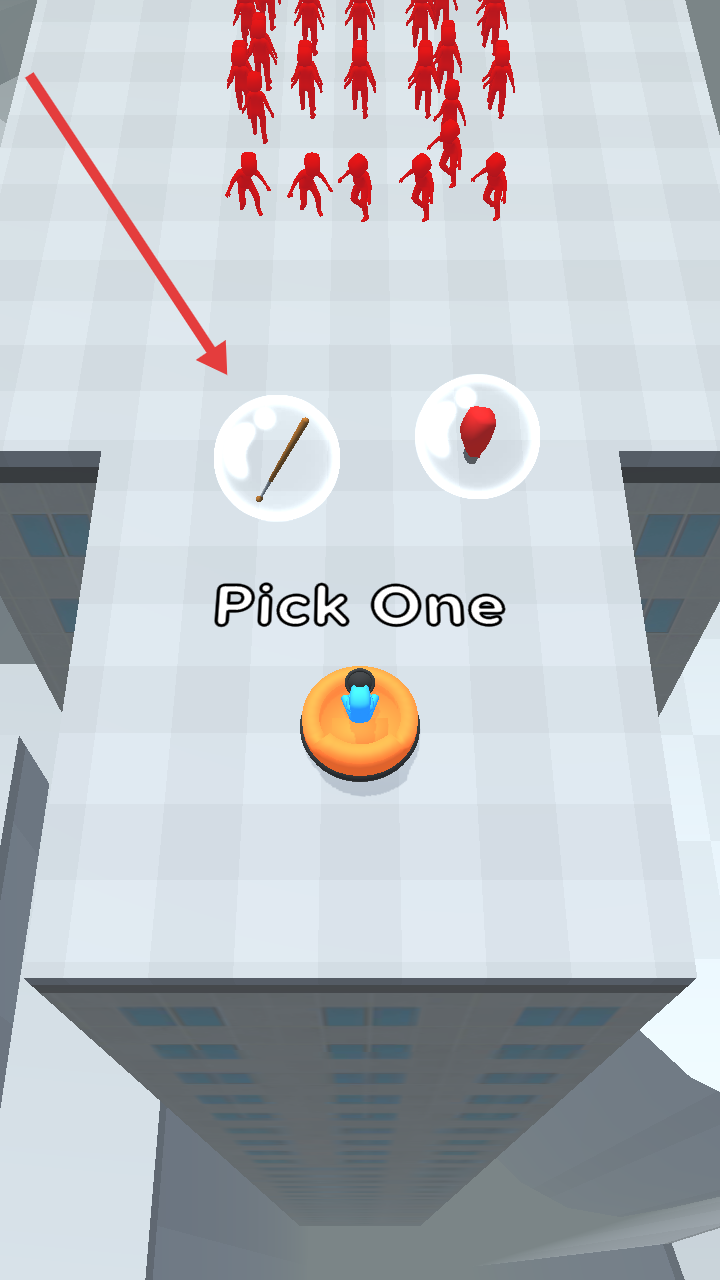 1、在选择界面,选择木棍道具,为后续攻击红色敌人做准备。