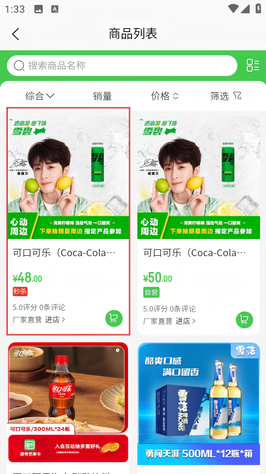 2、在商品列表中,选择想要购买的商品,点击进入商品详情页。