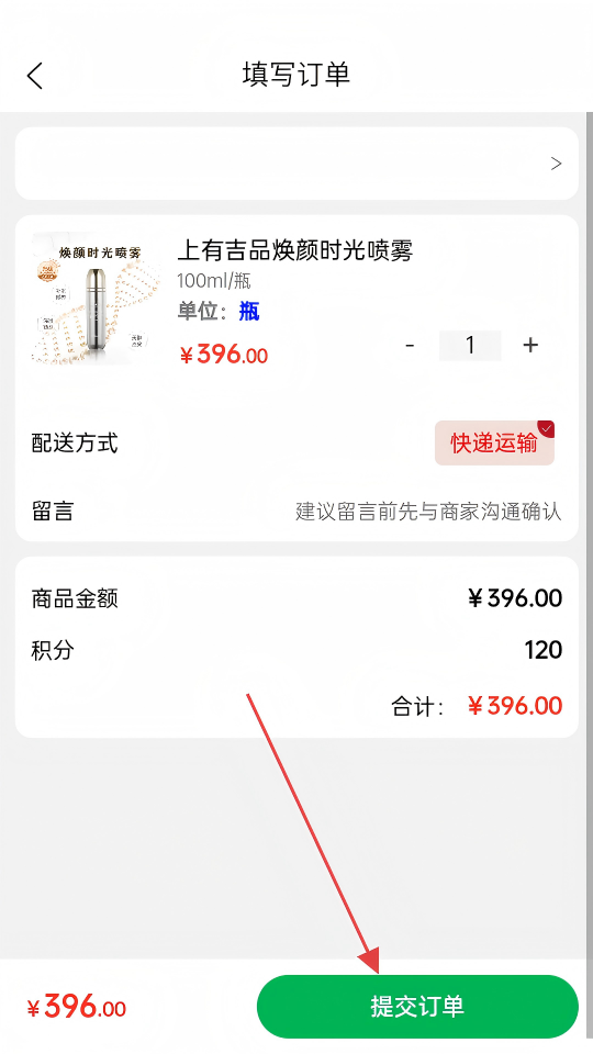 4、在填写订单页面,选择配送方式,确认商品金额、积分等信息后,点击【提交订单】,完成购买。