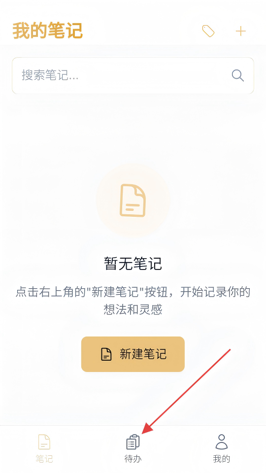 1、在“我的笔记”页面,点击底部【待办】,进入待办事项页面。