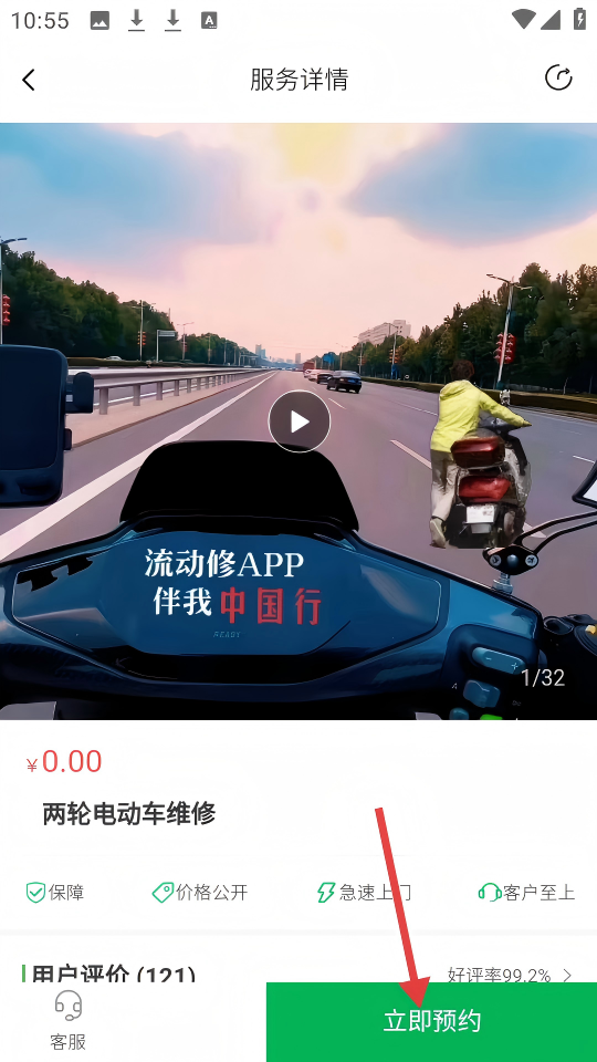 3、在【服务详情】页面,点击【立即预约】按钮。