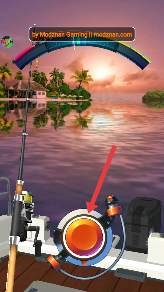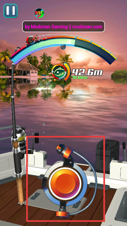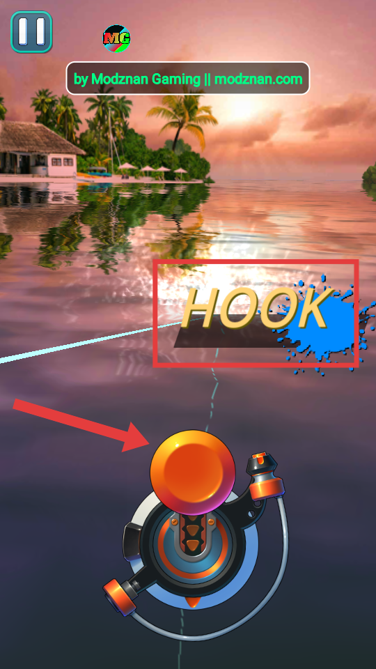 2、当屏幕出现【HOOK】提示时,立即点击下方橙色按钮,确保鱼钩牢固钩住鱼,利用mod菜单提升上钩成功率。