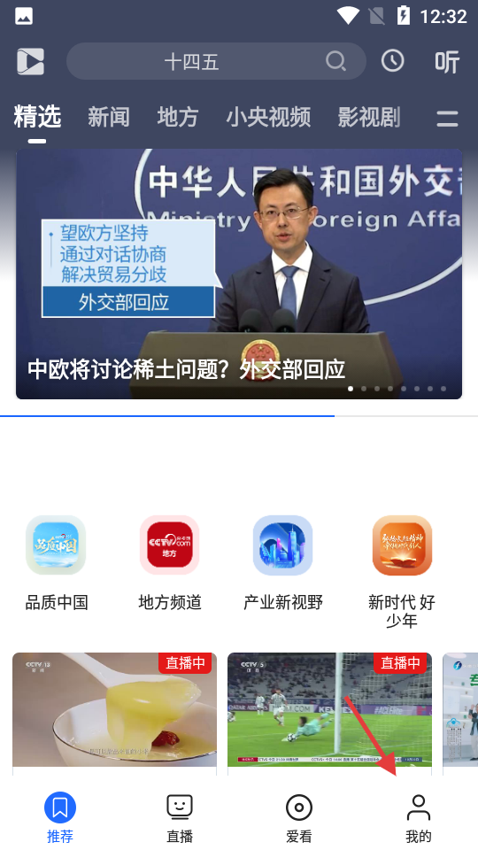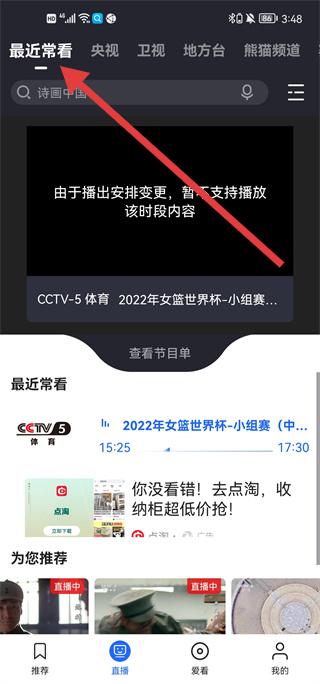 1、打开APP【直播】页顶部分类切换选想看频道。