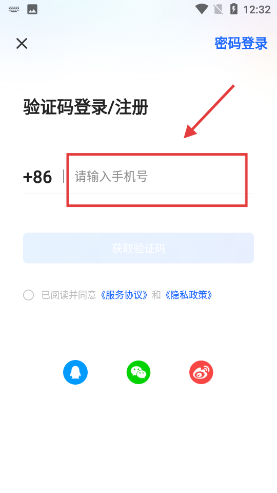 3、输入【手机号】,点击【获取验证码】。