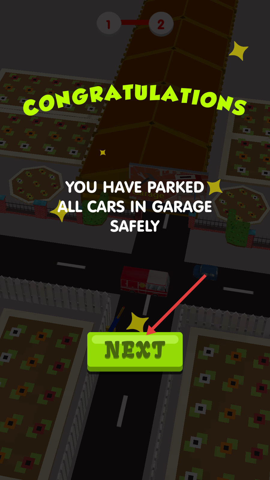 4、成功停好所有车辆后,点击【NEXT】按钮,进入下一关。