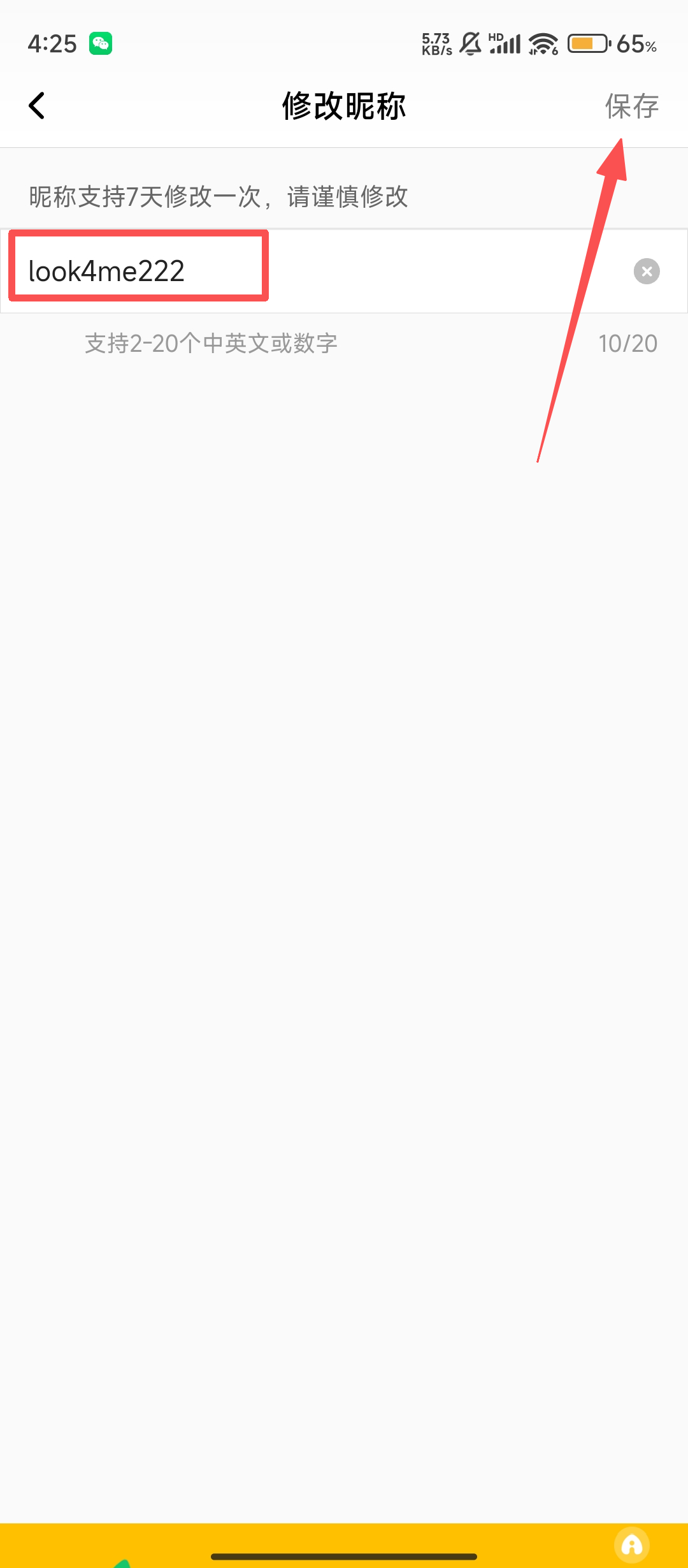 4、在修改昵称页面,输入新昵称后点击【保存】,就能成功更换名字啦。