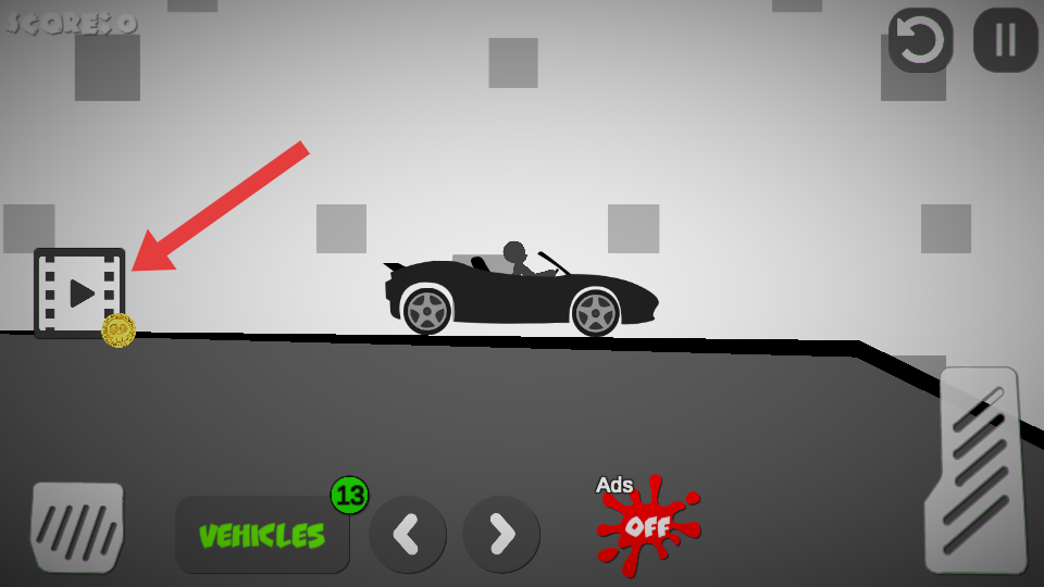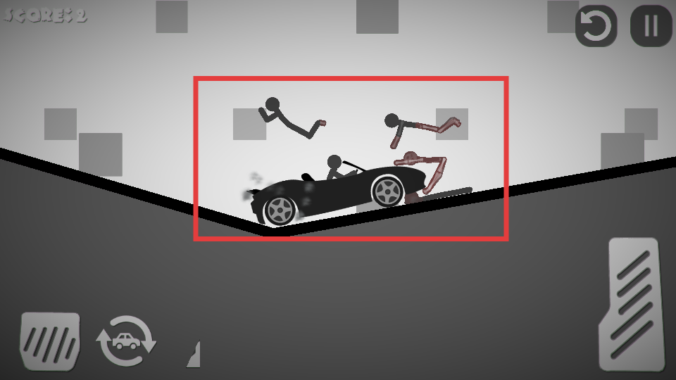 3、驾驶车辆撞击火柴人,造成更多破坏以获取高分,无广告可连续挑战。