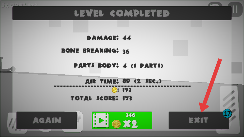 4、关卡完成后,点击【EXIT】可退出或继续挑战,无广告干扰提升游戏效率。