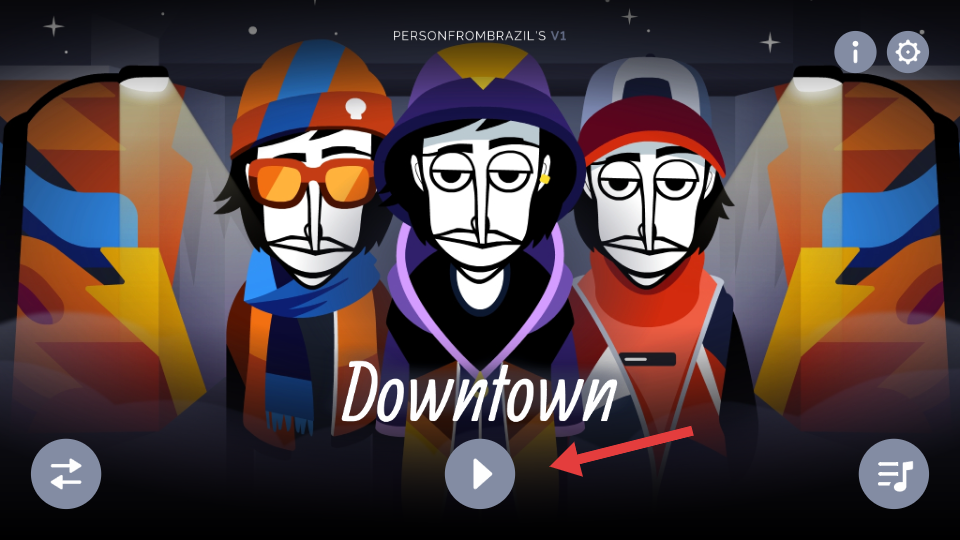 1、进入游戏后,在显示【Downtown】的界面,点击中间的播放按钮,开启相关游戏内容。