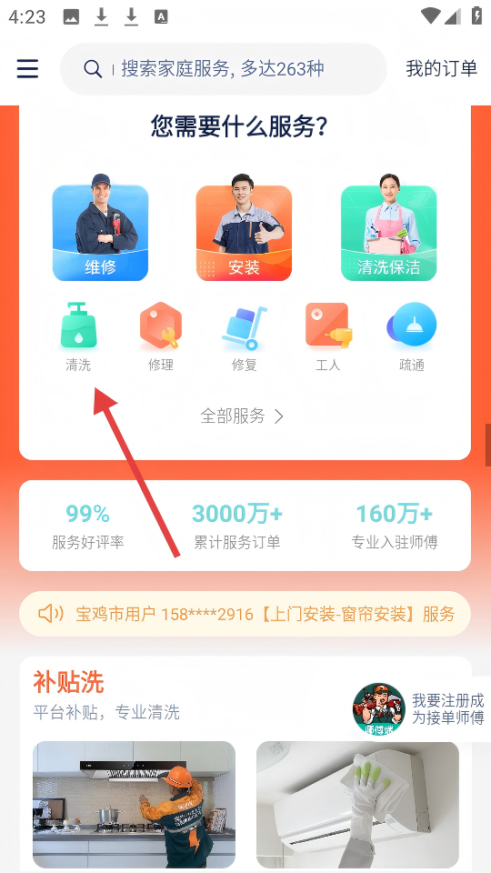 3、地域覆盖广泛:服务网络遍及全国3267区县,城乡区域均能匹配就近师傅,打破地域服务供给壁垒。