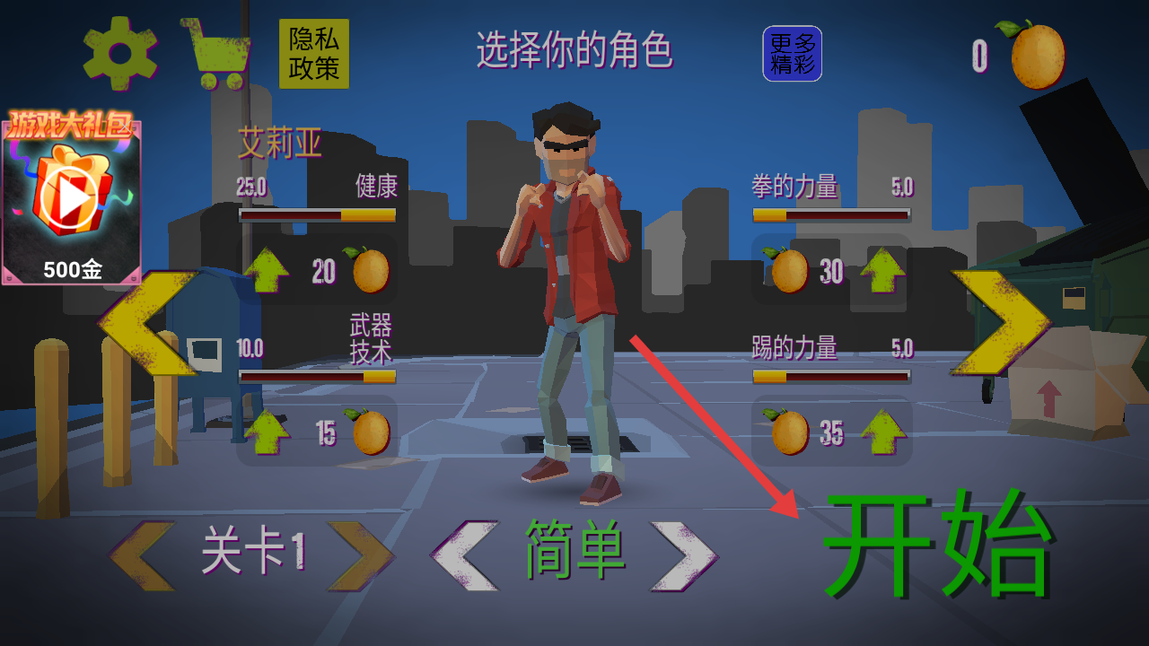 1、点击开始按钮,选择角色艾莉亚,进入关卡1的简单难度挑战。