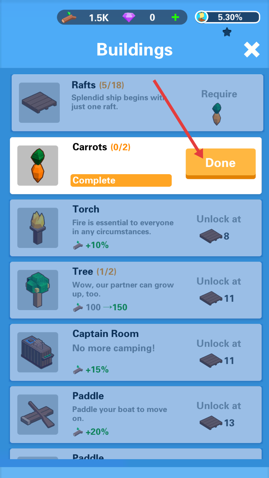 2、在建筑界面,点击【Done】,完成胡萝卜建筑建造。