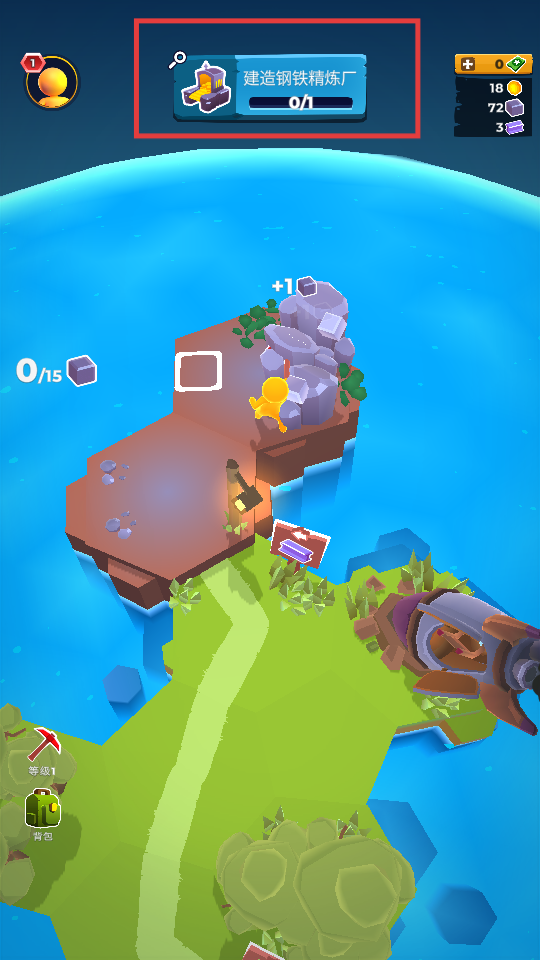 4、继续收集岩石,完成【建造钢铁精炼厂】任务,推进建筑进程。