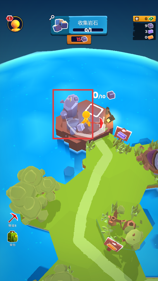 3、完成【收集岩石】任务,获取岩石资源,提升游戏进度。