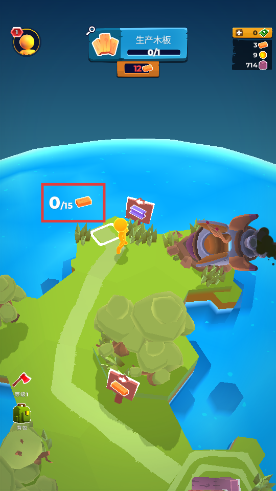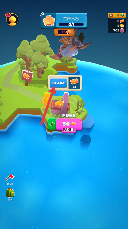 1、点击【CLAIM】,领取木板,推进【生产木板】任务。