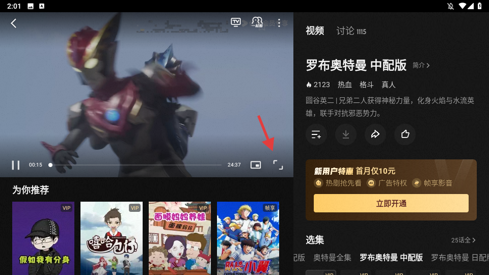 1、在视频播放界面,点击右下角全屏按钮,切换至全屏播放模式。