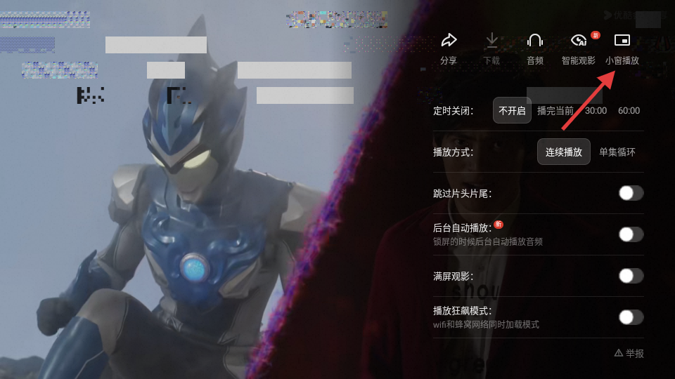 4、视频将以小窗形式悬浮显示,此时可返回优酷首页浏览其他内容,小窗仍会持续播放视频。