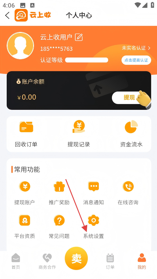 1、在云上收首页,点击底部【我的】,进入个人中心页面。