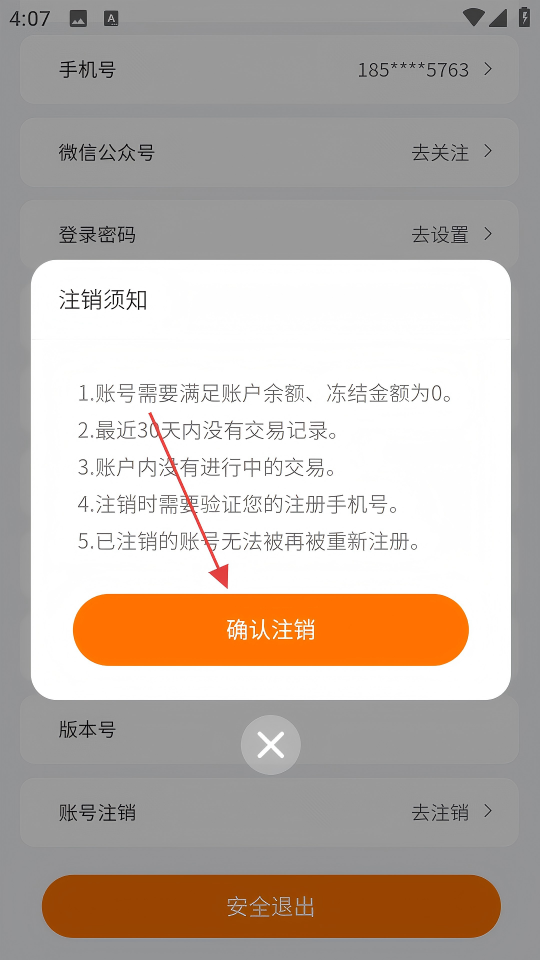 4、查看注销须知后,点击【确认注销】,即可按流程注销账号。